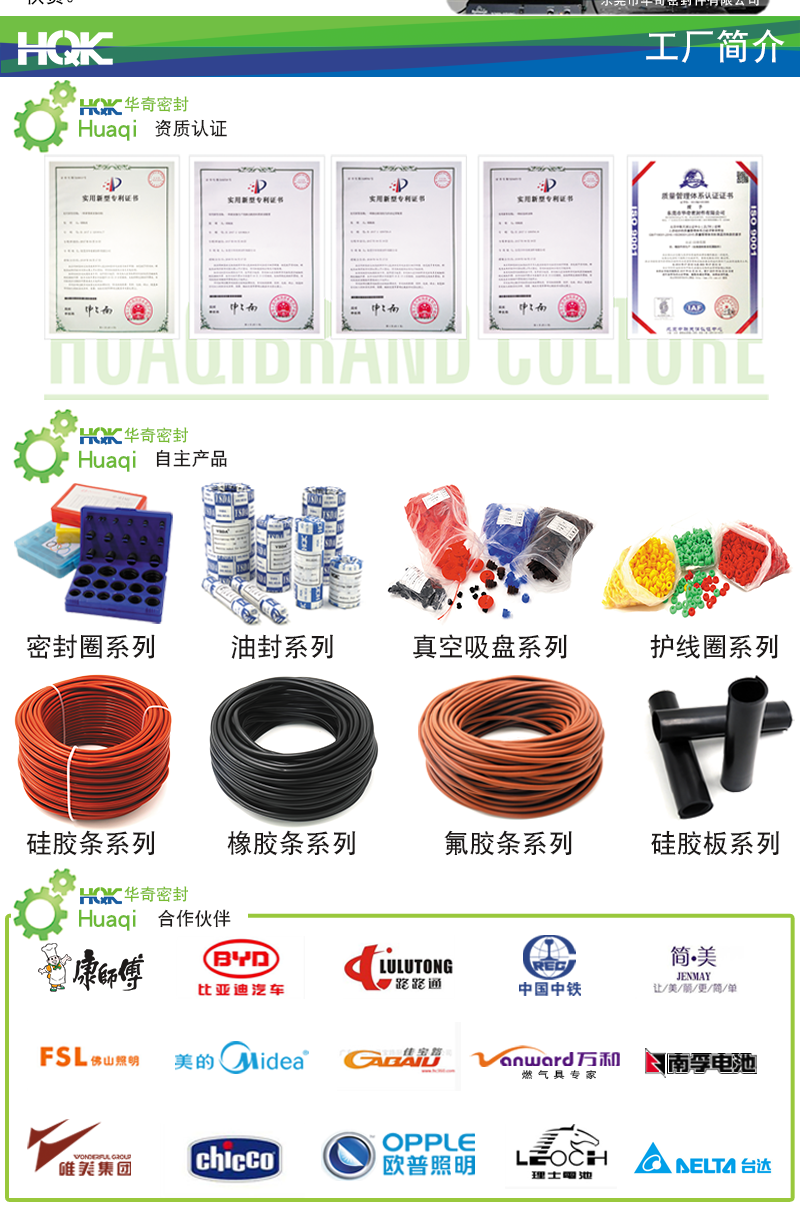 東莞市華(huá)奇密封件有限公司成立於2006年,位於廣(guǎng)東省東莞市石碣(jié)鎮,占地麵積10000平方米,公司員(yuán)工150餘人,是廣東省集(jí)橡(xiàng)膠矽(guī)膠硫化、橡膠擠出、矽膠(jiāo)擠出(chū)一(yī)體化生(shēng)產的新型企業。